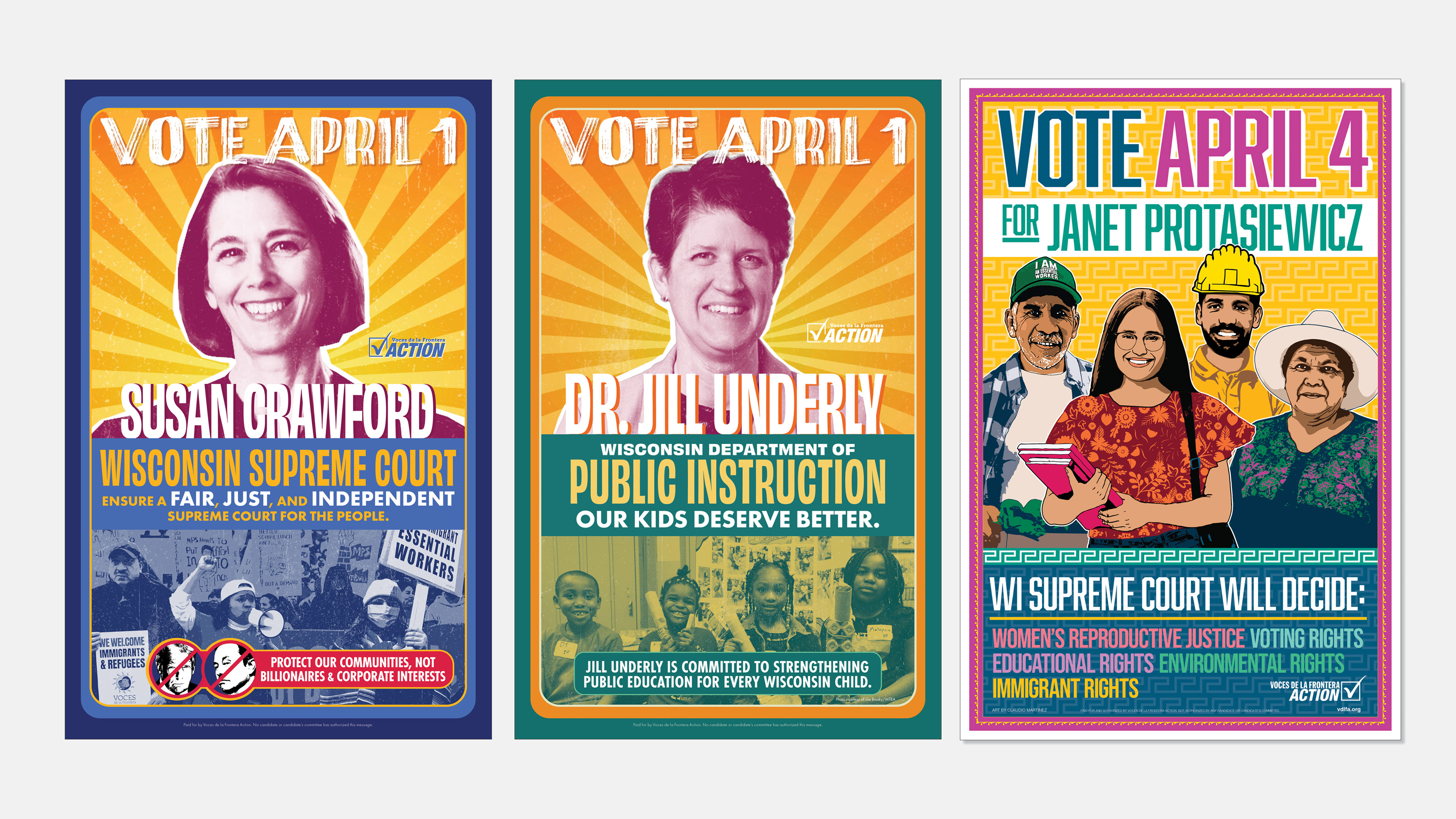 Poster designs for Voces de la Frontera Action, the C4 affiliation of Voces de al Frontera