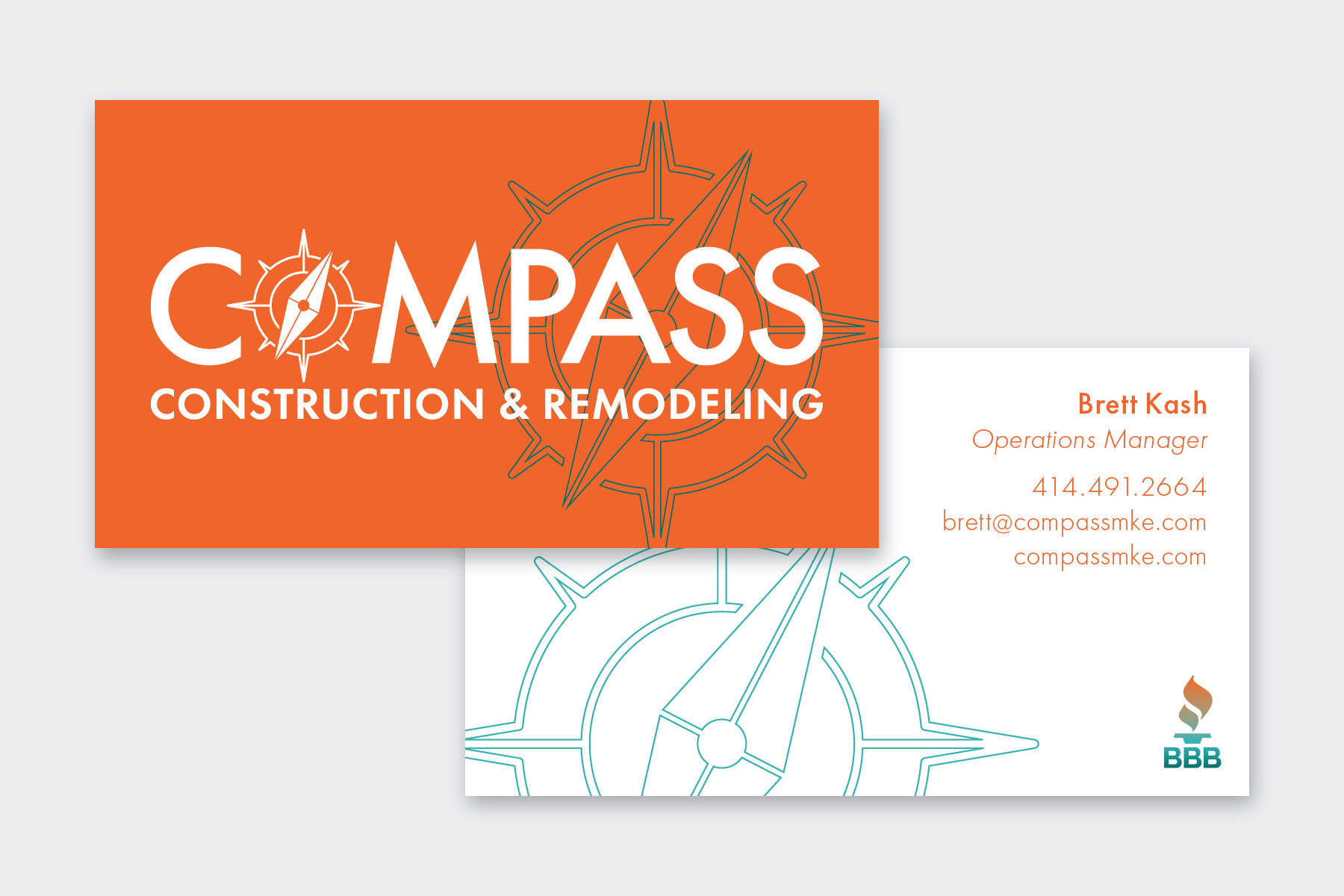 Logo and business card design for Compass Construction, a remodeling group in Milwaukee, WI. (compassmke.com)